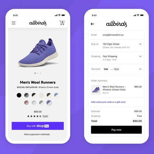 Waarom maakt Shopify deze move? Omdat hoe sneller en frictie-vrijer je checkout is, hoe hoger je conversie zal zijn - zoals Shopify onlangs weer eens bevestigd zag in de resultaten van hun Shop Pay checkout. Klanten die een Shop Pay account hebben vullen hun persoonlijke gegevens en betalingsinfo een keer in, en kunnen vanaf dan hun online aankopen bevestigen met een vijf-cijferige code.
