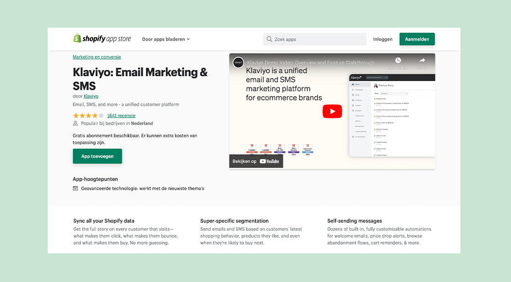 Klaviyo integreert bovendien al even naadloos met een flink aantal andere apps in deze lijst, en biedt daarmee nog veel meer mogelijkheden om je store definitief naar de top van jouw markt te helpen. Zowel qua omzet als klantervaring.