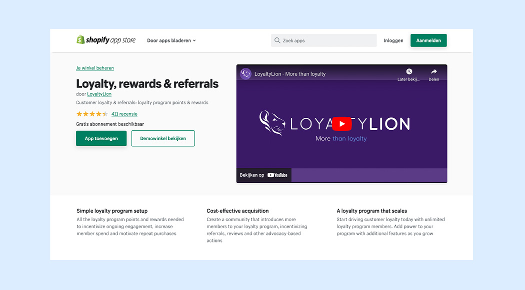 Terugkerende klanten zijn de beste klanten, en met LoyaltyLion geef je hen een goede reden om terug te blijven komen. Deze app helpt je om de aankoopfrequentie en Average Order Value (AOV) van jouw store een flinke boost te geven door een data-driven loyaliteitsprogramma op te zetten, toegespitst op jouw merk en wensen.