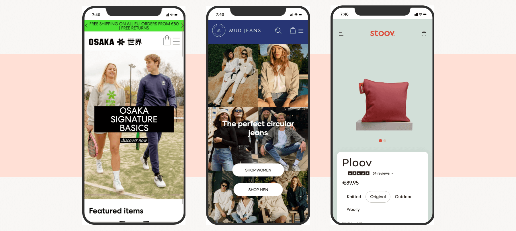 Wanneer je naar meer gevestigde e-commerce merken kijkt, waar de budgetten ruimer zijn en merken het zich kunnen veroorloven om samen te werken met een Shopify agency zoals Code, wordt het allemaal een stuk gevarieerder. Onze developers krijgen het in elk project weer voor elkaar om de grenzen van Shopify op te rekken, zowel qua design als technologie.