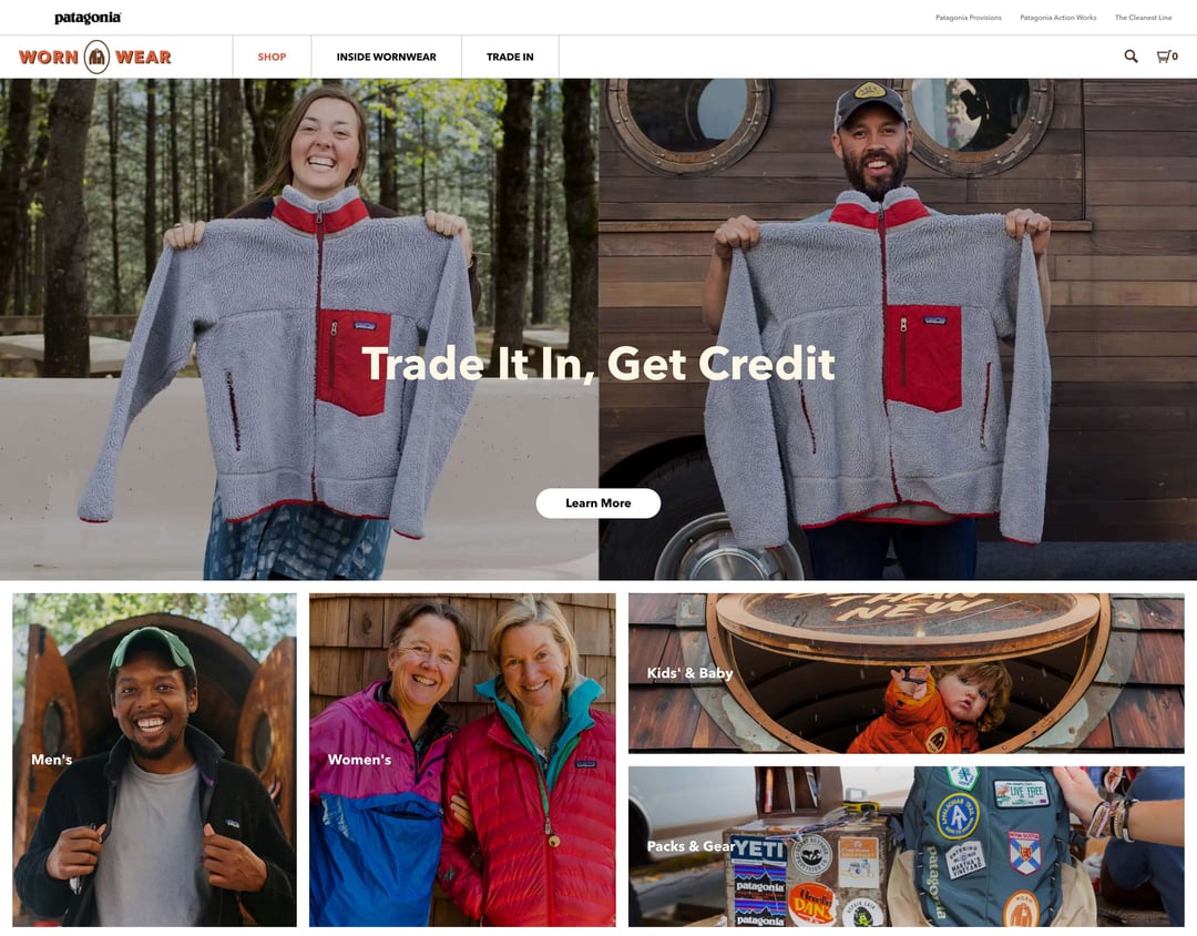 Patagonia heeft een eigen webshopomgeving met resale-producten, maar heeft de backoffice volledig uitbesteed aan Trove. Trove neemt de producten retour, verzorgt de reparatie en cleaning van producten, fotografeert ze opnieuw en verzorgt de fulfilment. Als consument ontvang je shoptegoed voor je item en dat kan je dan weer gebruiken voor de aanschaf van een nieuw of tweedehands product. Zo zorgt Patagonia dat de liquiditeit - heel slim én duurzaam - binnen het bedrijf blijft.
