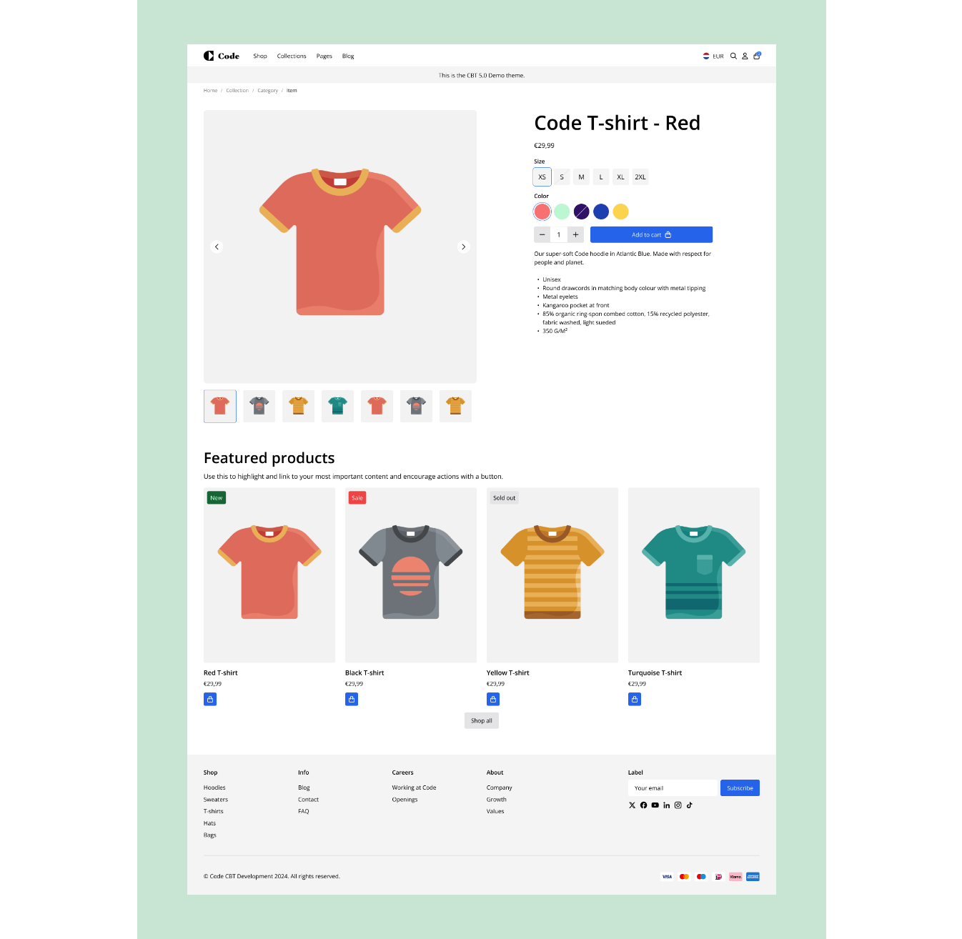 Code heeft een oplossing die de voordelen van standaard Shopify thema's combineert met die van custom thema's, zonder de nadelen van die twee. Het Code Base Theme (CBT) biedt je het beste van twee werelden: het is schaalbaar, volledig aanpasbaar en high-performing zonder je budget erdoorheen te jagen of je launch te vertragen.