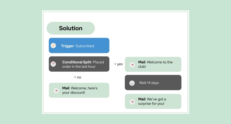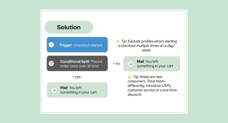 In de Abandoned Checkout flow kan personalisatie een groot verschil maken. Een veel voorkomende fout is hetzelfde behandelen van bestaande en nieuwe klanten.