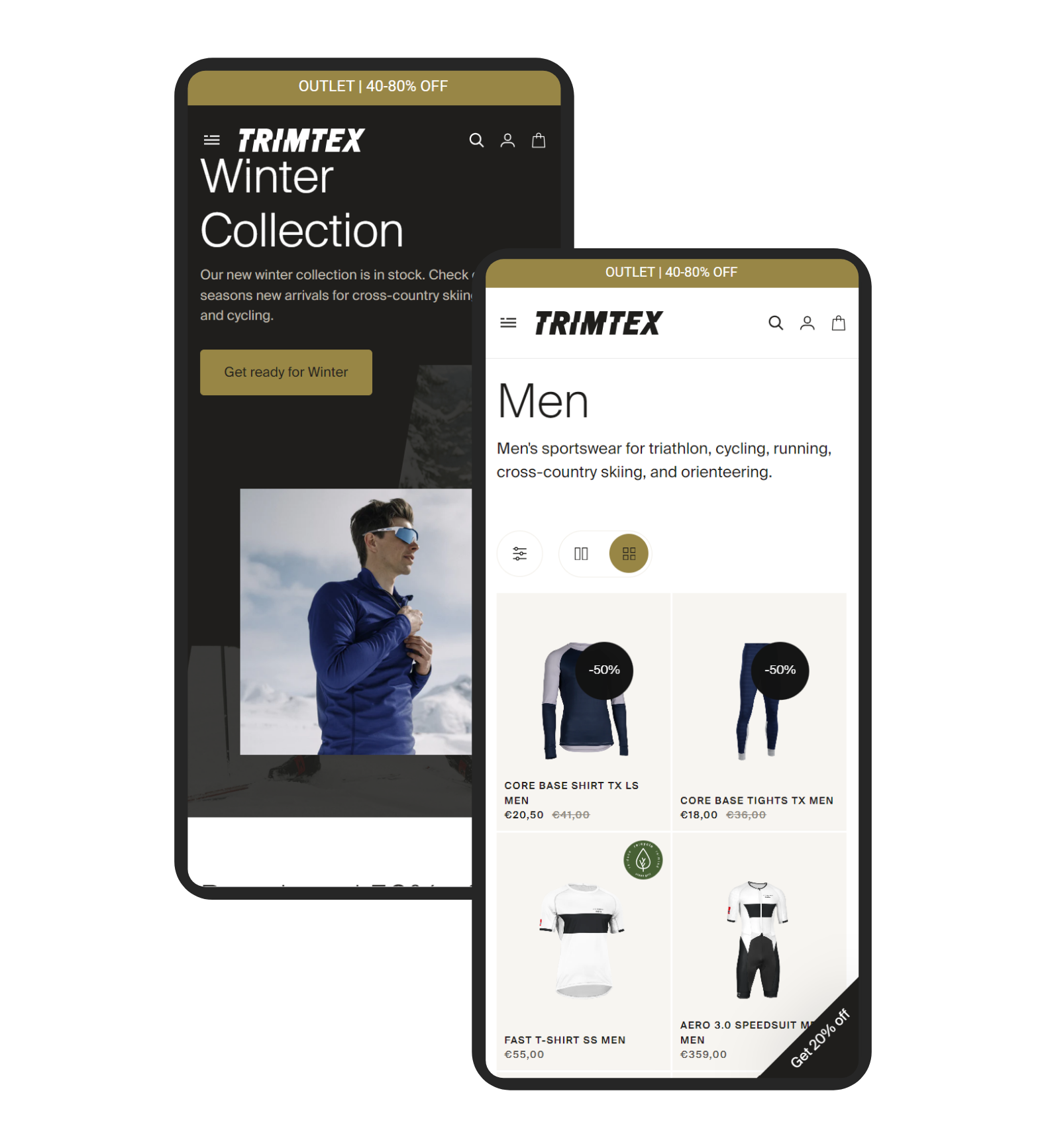 Trimtex is een gevestigd Noors merk dat kleding verkoopt voor outdoor sporten als hardlopen, fietsen, cross-country skiën, triatlon en oriëntatielopen. Als onderdeel van hun aanbod bieden ze sportteams, clubs en bedrijven een platform om hun eigen tijdelijke webshop te openen, waar teamleden custom-designed Trimtex producten kunnen kopen. Trimtex heeft elke week rond de 50 van deze stores in de lucht, die onderling flink van elkaar kunnen verschillen qua features en meestal maar een paar weken beschikbaar zijn.